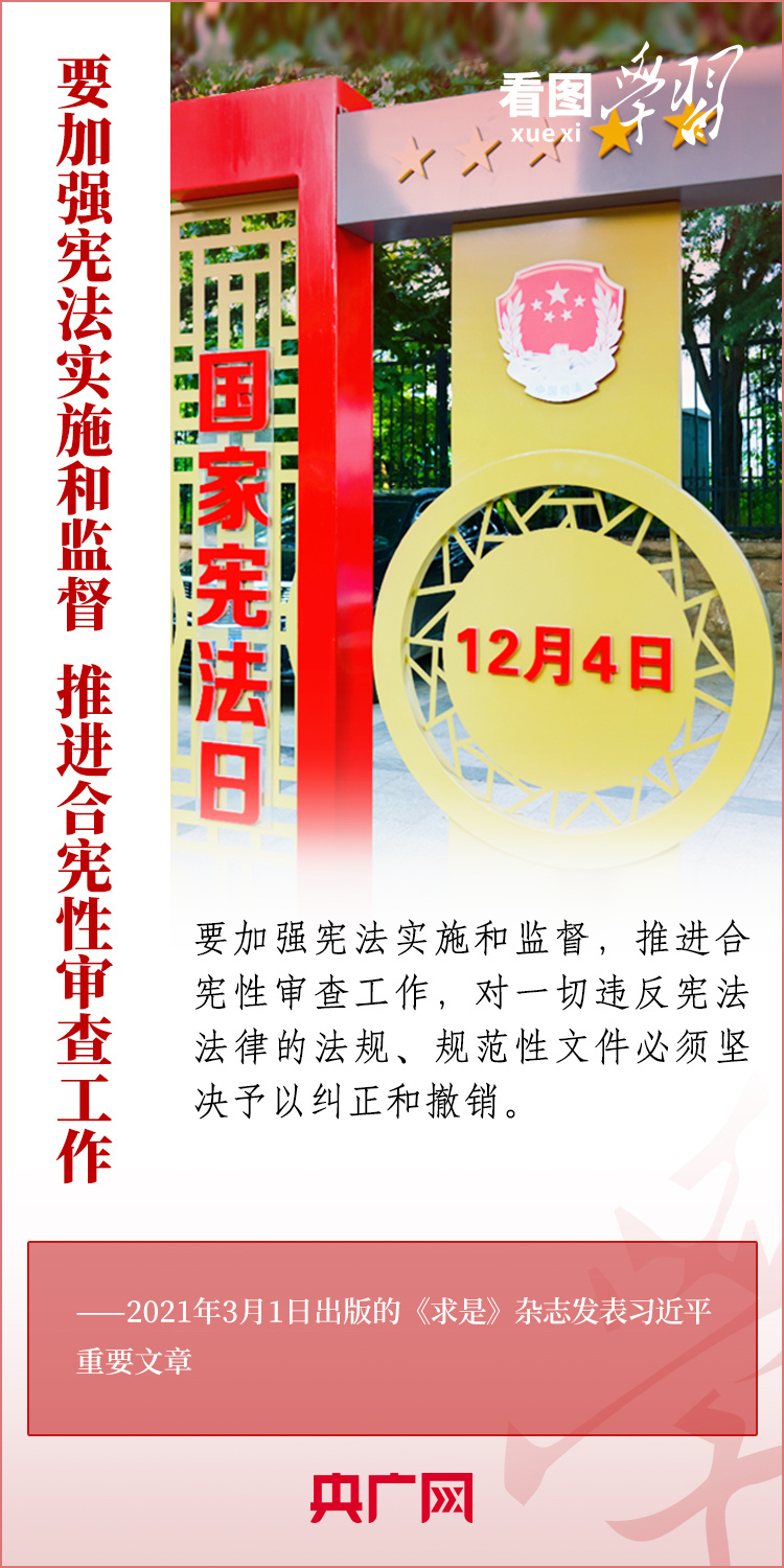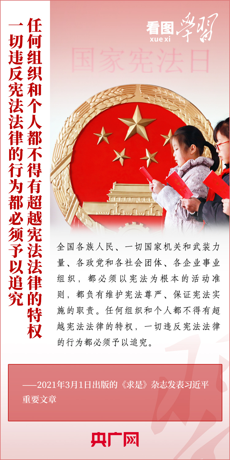 憲法是國家的根本法,是黨和人民意志的集中體現。尊崇憲法、學習憲法、遵守憲法、維護憲法、運用憲法,是每個公民的義務。在第十個國家憲法日(12月4日)來臨之際,《看圖學習》欄目為您梳理習近平總書記關于憲法的重要論述。一起來學習!